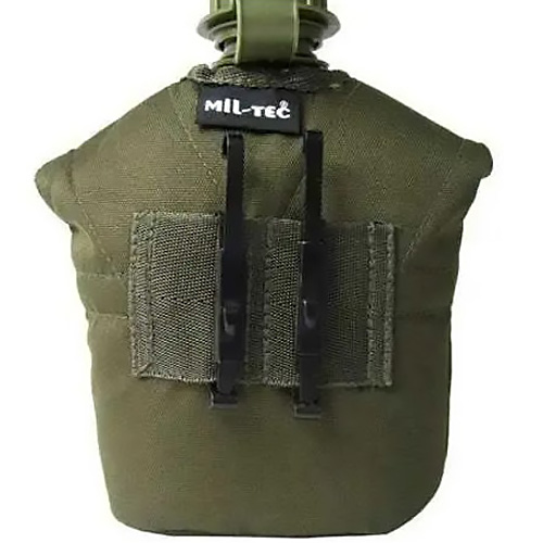 Міцний матеріал, стійкий до тріщин та проколів. Ергономічна форма дає велику ємність при невеликих розмірах. Комфортний та міцний чохол з теплоізоляцією та можливістю обв'язування. Алюмінієва кружка з практичною ручкою Фляга для води з чашкою Mil-Tec з високоякісного полімеру. Ковпачок фляги постійно прикріплений до так, що втратити її було неможливо. У комплект входить кришка з кнопками, що забезпечує ізоляцію,термічний і захищає воду від замерзання, нагрівання або охолодження. На боці кришки є невелика кишеня для таблеток для дезінфекції води. Також у комплект входить алюмінієва чашка із ручками. Коли кухоль не використовується, його можна зберігати разом зі їдальнею в чохлі. На звороті кришки є ручки, які дозволяють прикріпити флягу до ременя та обладнання.