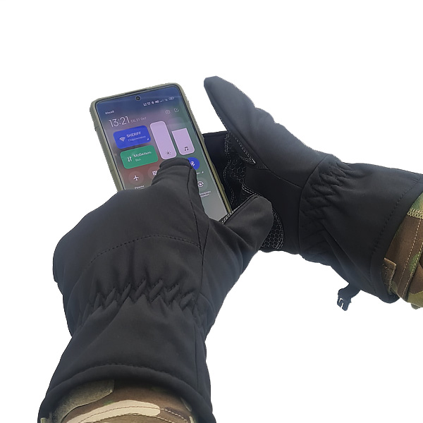 Winter sensory gloves made of softshell membrane microporous waterproof material with microfleece lining. These gloves are equipped with Touch pads on the fingertips, which allows you to use the touch screens of any device without removing gloves.