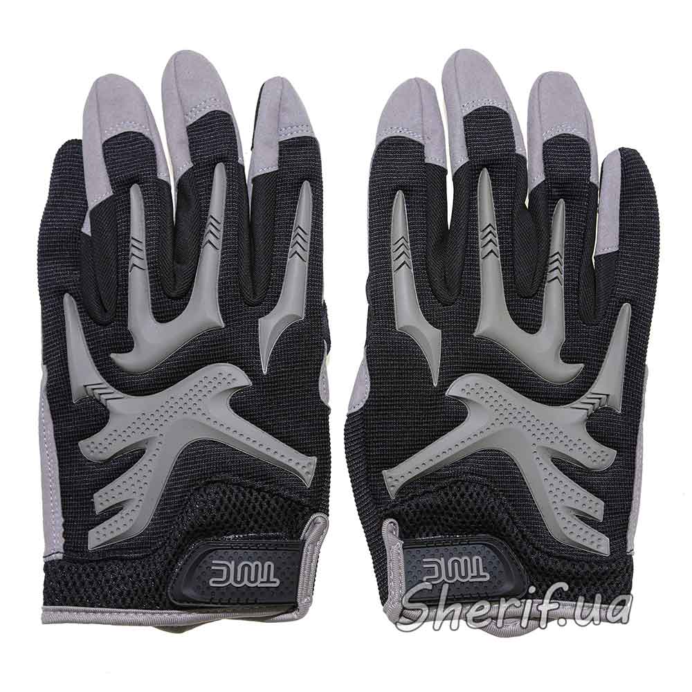 TMC Impact Pro Gloves Black are full-fingered, heat-resistant, water-resistant synthetic leather gloves with strategically placed spandex polymer padding for added protection against mechanical damage at the knuckles and outside of the hand. Gloves two-tone: main color - black, some details are gray. The back of the hand is anatomical, made of eco-suede, which prevents rubbing and wear of the product and ensures durability.