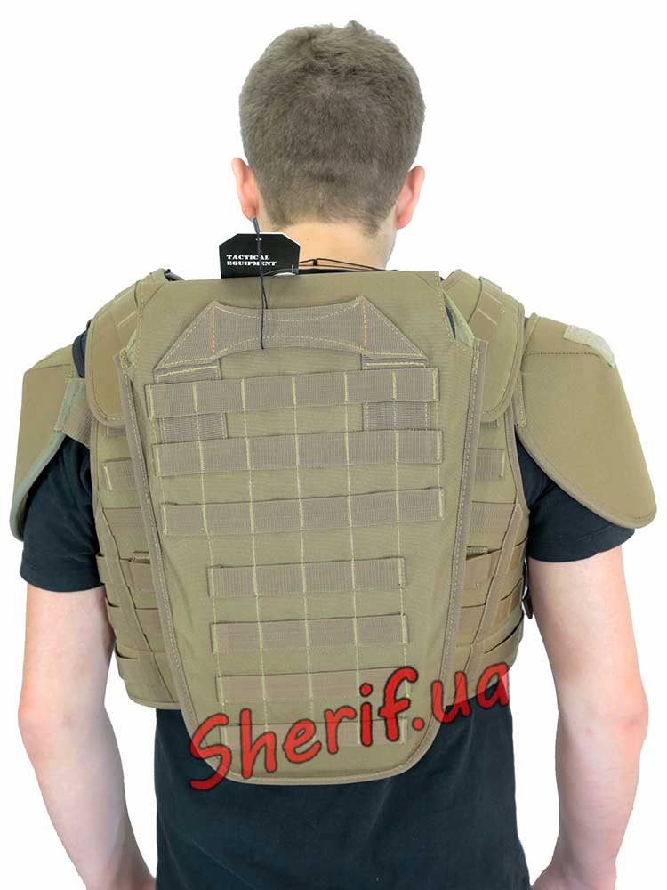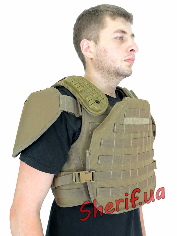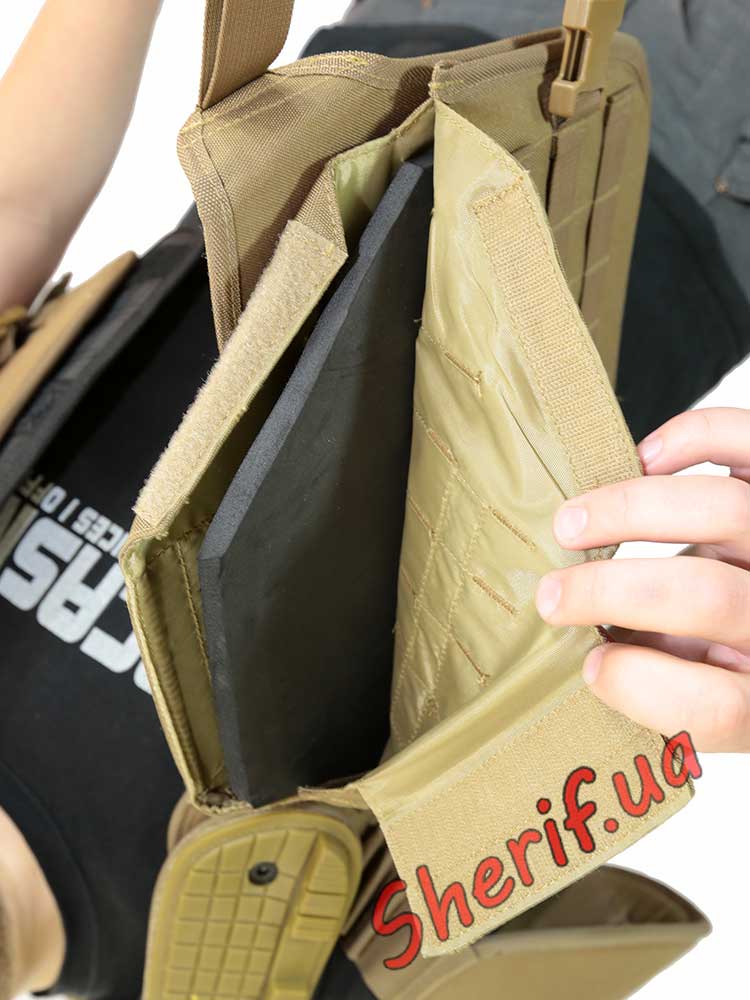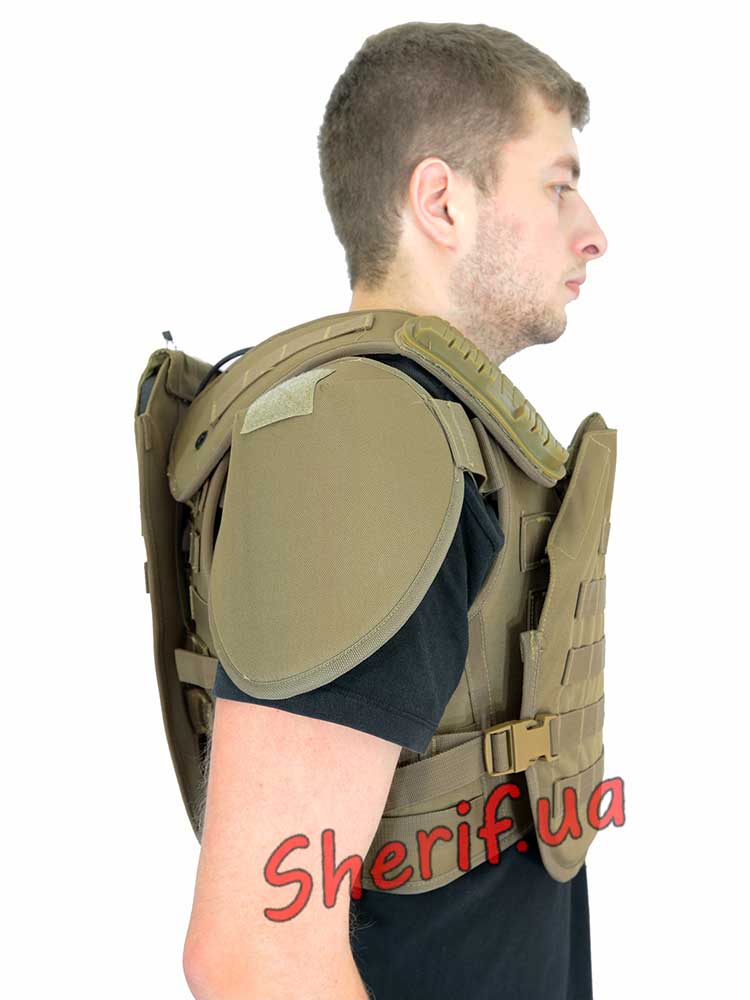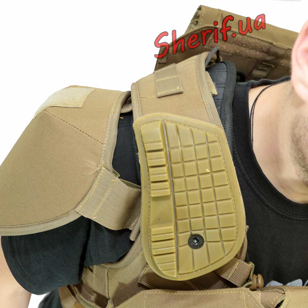 The vest, as already mentioned, has a large overall area of protection, including strong panels to protect the shoulders. Interestingly, pockets for ballistic plates are located - outside, and not inside the vest, as is customary in most models. Comes with damper rubber bushings.