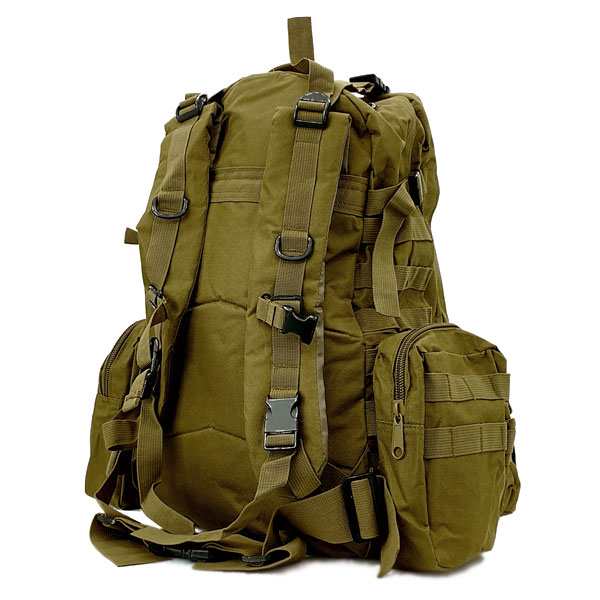 MOLLE straps are sewn on the outer and sides of the backpack for hanging additional equipment or totals.