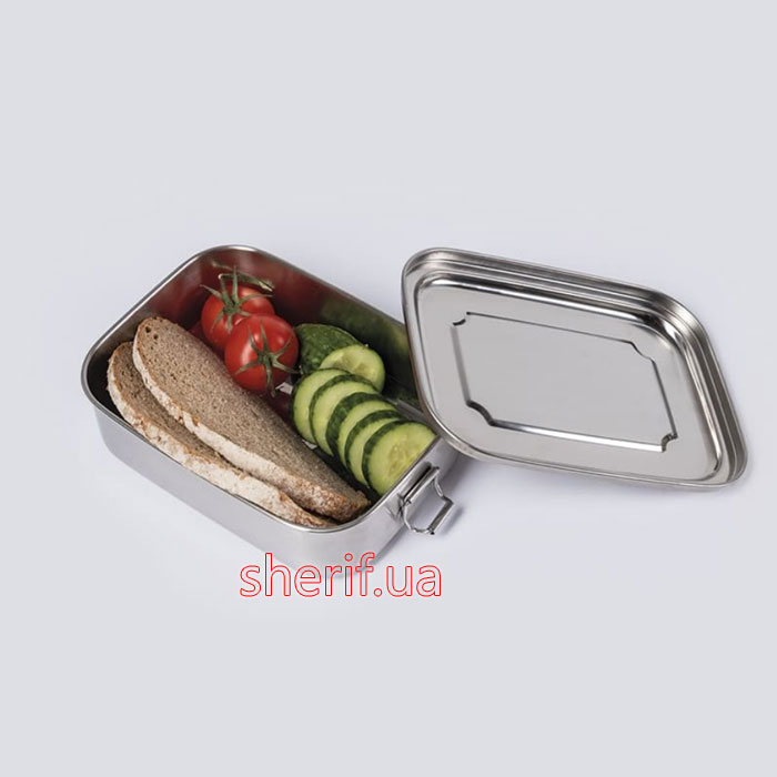 – stable, practical and durable stainless steel lunchbox - securely fastened with two clips