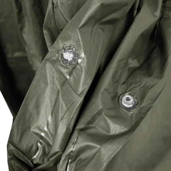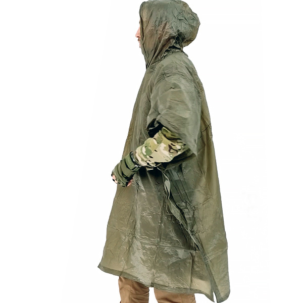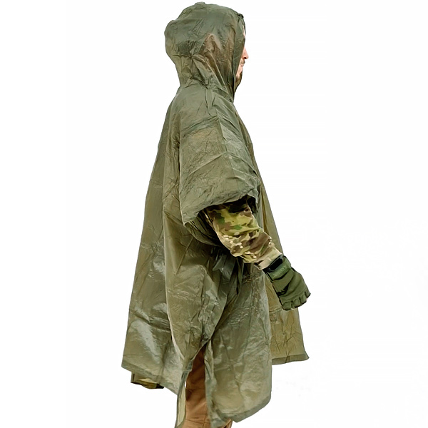 Изготовлено пончо из поливинилхлорида, который давно зарекомендовал себя как первоклассный материал для производства сумок, вещевых мешков, палаток, тентов и походных плащей.