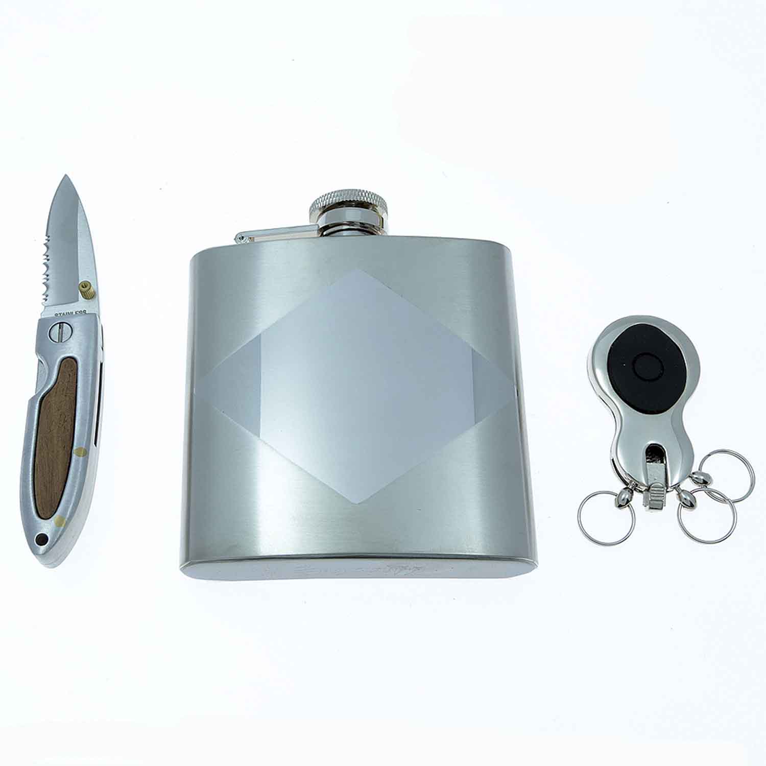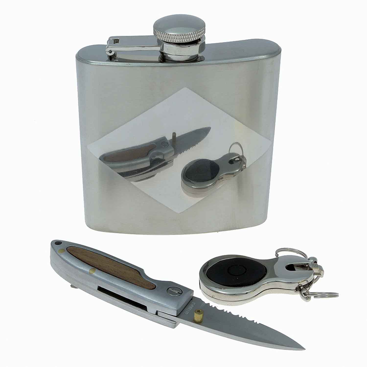 Цей подарунковий набір із флягою варто дарувати чоловікам, яким не сидиться на місці у свій вихідний. Чоловікам, для яких мисливство, риболовля та походи миліші, ніж телевізор з диваном. І нарешті, чоловікам, довкола яких завжди збирається велика компанія друзів та рідних.