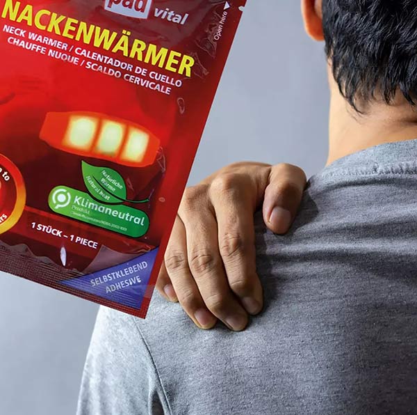 - Зніміть захисну плівку та приклейте грілку до шару одягу поруч із шиєю або плечима.