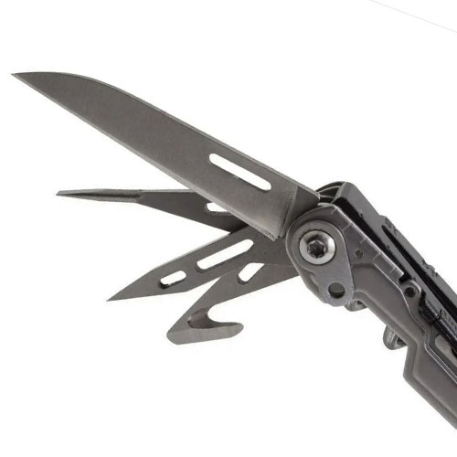 Інструменти: шило, відкривання пляшок, консервний ніж, пробковий гвинт з важільний механізм, захоплення, різак жорсткого дроту, плоскогубці, викрутка Філіпс, транспортир, лінійка, ножиці, маленька плоска викрутка, лезо, біт-викрутка, викрутка юр дроту