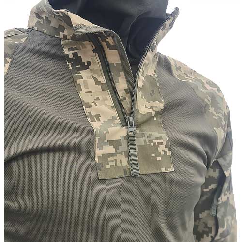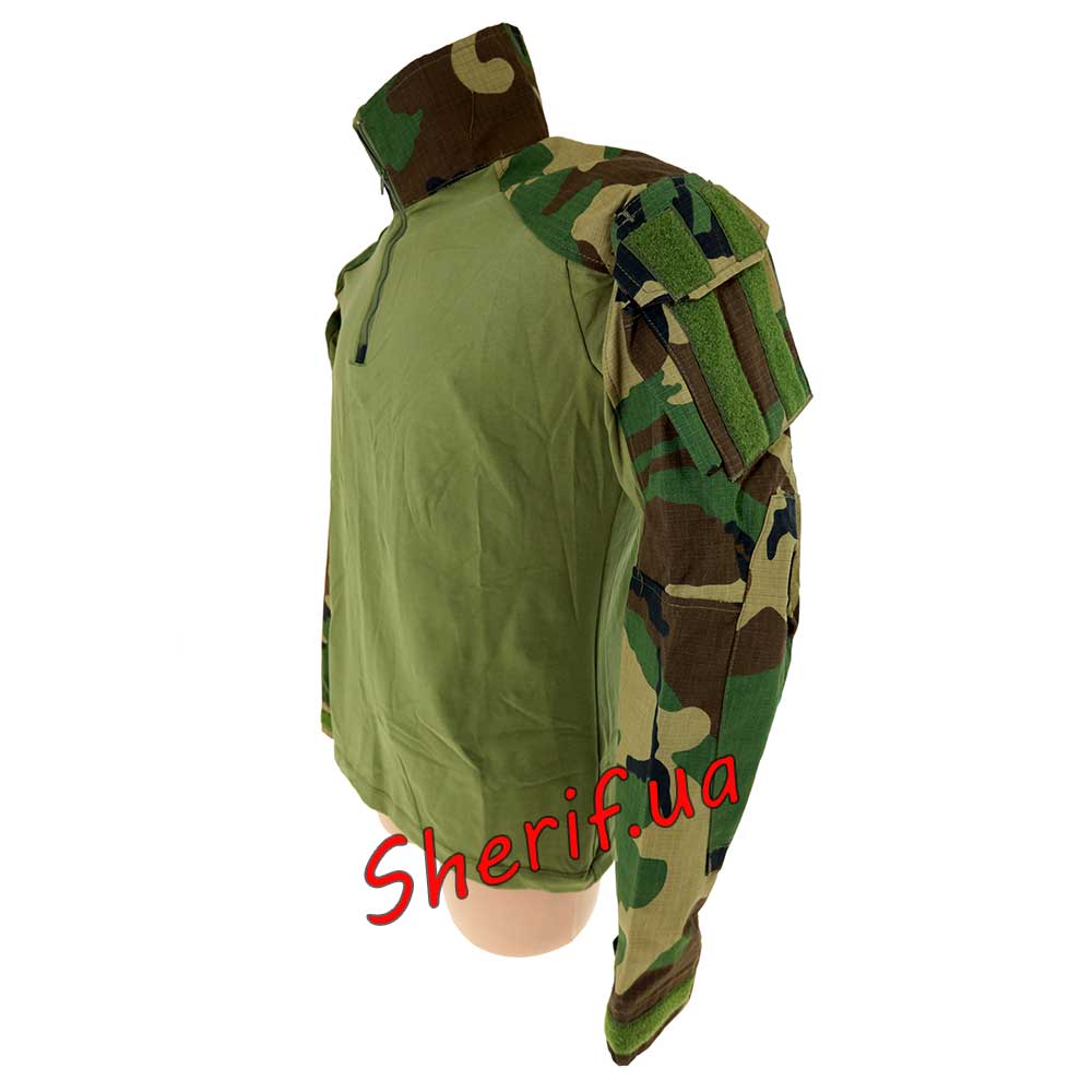 Тактична сорочка у забарвленні Woodland третього покоління. Основа сорочки з багатошарового полімерного матеріалу, що забезпечує відведення вологи від тіла та її випаровування із зовнішнього боку матеріалу. Комір на застібці типу «блискавка», рукави забезпечені кишенями з нашитим велкро. Ідеально підходить при носінні разом із бронежилетами.