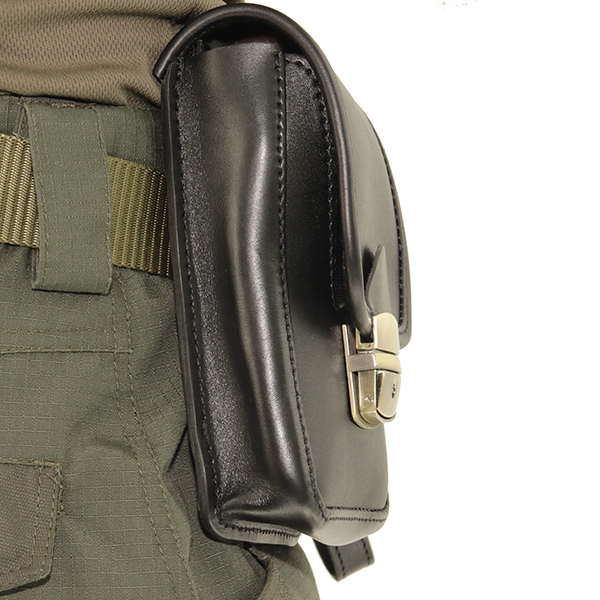 З фронтального боку сумка має глибокий виріз – щоб було зручніше пістолет витягувати. Зверху пришитий клапан середньої довжини.
