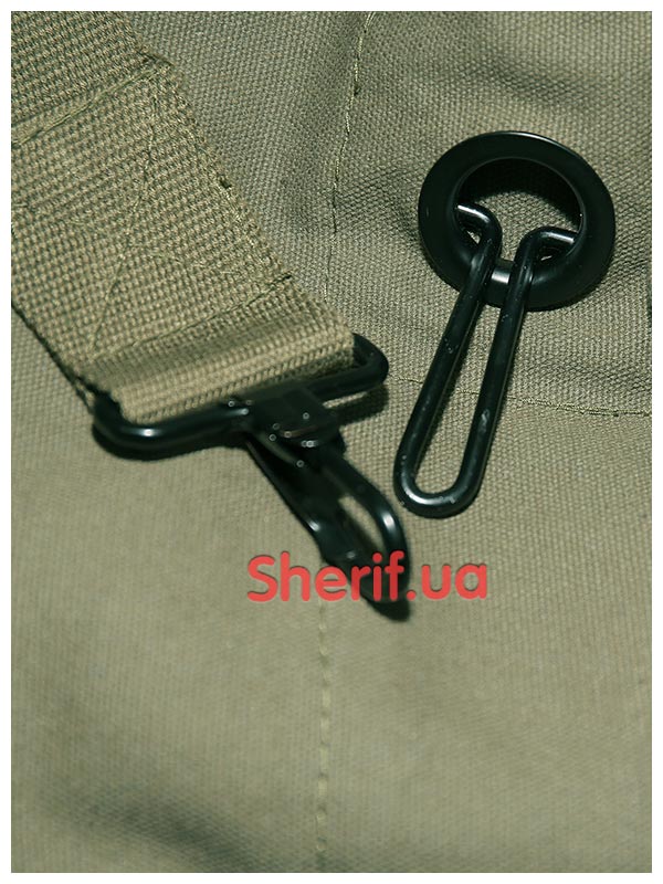 - Надійний механізм закриття Завантаження здійснюється через верх. По сторонах горловини розташовані люверси. Вони нанизуються на спеціальну металеву петельку та застібаються карабіном. Отвір люверса закритий з внутрішньої сторони щільною тканинною підкладкою, що унеможливлює попадання вологи через цю область.